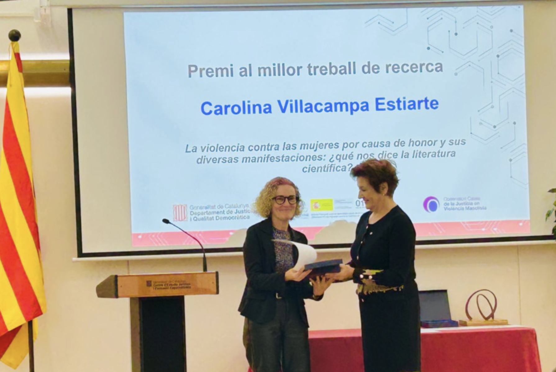 Descarregar PdfLa violència contra les dones per motius d’honor i les seues diverses manifestacions: què ens diu la literatura científica? és l'article científic premiat per l'Observatori català de la justícia en violència masclista (OCJVM), en l'edició d'enguany dels seus guardons a treballs d’investigació, iniciatives i pràctiques orientats a l’erradicació de les violències masclistes en l’àmbit de la justícia, impulsats per ens, particulars, institucions i organismes públics o privats, així com al reconeixement a una llarga trajectòria professional pionera en aquest camp. [Ampliar notícia]