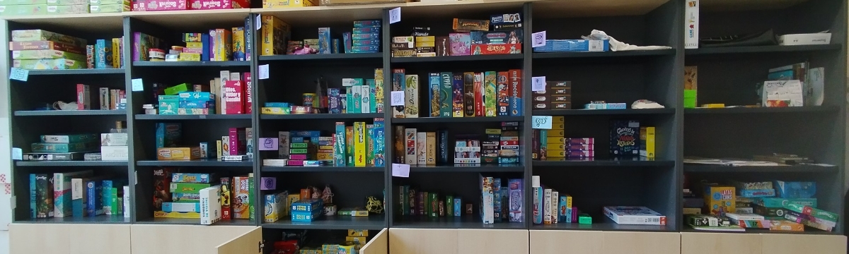 Ludoteca amb més de 700 jocs catalogats. Múltiples copies dels jocs per poder fer una intervenció en una aula de 25 alumnes simultàniament.
